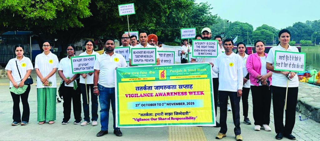 चण्डीगढ़ : पंजाब एंड सिंध बैंक, चण्डीगढ़ द्वारा सतर्कता जागरूकता सप्ताह 2025 के तहत ईमानदारी, पारदर्शिता और सामाजिक ज़िम्मेदारी को प्रोत्साहित करने वाली कई गतिविधियों का आयोजन किया गया। बैंक की ओर से एफजीएम कार्यालय, चण्डीगढ़ में रक्तदान शिविर आयोजित किया गया, जिसमें बड़ी संख्या में बैंक कर्मचारियों और स्वयंसेवकों ने बड़े उत्साह के साथ भाग लिया।जीवन बचाने के इस पुण्य कार्य के माध्यम से बैंक ने न केवल नैतिक बैंकिंग प्रथाओं के प्रति अपनी प्रतिबद्धता प्रदर्शित की, बल्कि सामाजिक कल्याण और जनसेवा के प्रति अपने उत्तरदायी दृष्टिकोण को भी सशक्त किया। इसके अलावा सुखना झील पर वॉकथॉन आयोजित किया गया जिसका उद्देश्य नागरिकों में सतर्कता, ईमानदारी और जवाबदेही का संदेश फैलाना था।भ्रष्टाचार को ना कहो-राष्ट्र के प्रति समर्पित रहो की थीम से जुड़े नारों और तख्तियों के साथ बैंक की विभिन्न शाखाओं के कर्मचारियों ने इसमें भाग लिया और जागरूकता फैलाई। इन प्रयासों के माध्यम से, पंजाब एंड सिंध बैंक का उद्देश्य सार्वजनिक जीवन में पारदर्शिता और नैतिक आचरण के महत्व को मजबूत करना और सभी हितधारकों की सक्रिय भागीदारी के माध्यम से एक भ्रष्टाचार-मुक्त समाज के निर्माण को प्रेरित करना था।